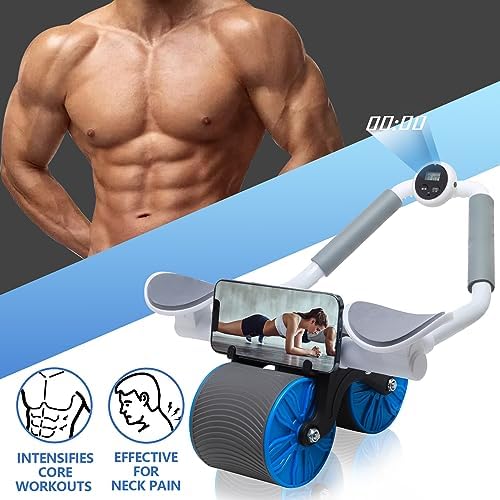 MIAODAM Automatic Rebound Abdominal Wheel, Ab Roller with Elbow Support and Timmer, Plank Ab Roller Wheel for Core Trainer with Knee Mat, Perfect Core Exercise Equipment for Home Workouts