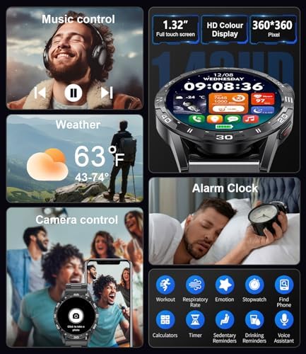 Military Smart Watch for Men, 5ATM Waterproof Tactical Rugged Smart Watch with Bluetooth Call, 1.32″ HD Big Screen, 100+Sports Modes Fitness Tracker, Heart Rate Sleep Monitor for iPhone Android iOS