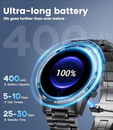 ⌚ 100+ DIY DIALS&SUPER LONG BATTERY LIFE-Over 100 kinds of dials for you to choose from, you can even customize your colour and style to show your personality. This iOS android smart watch comes with a 360mAh large battery that provides up to 7-10 days of usage and an incredible 30 days of standby time, and takes only 2 hours to charge. The men’s smartwatch has a variety of useful functions such as alarm clock, stopwatch, music/camera control, weather, torch, find your phone and more.
