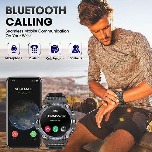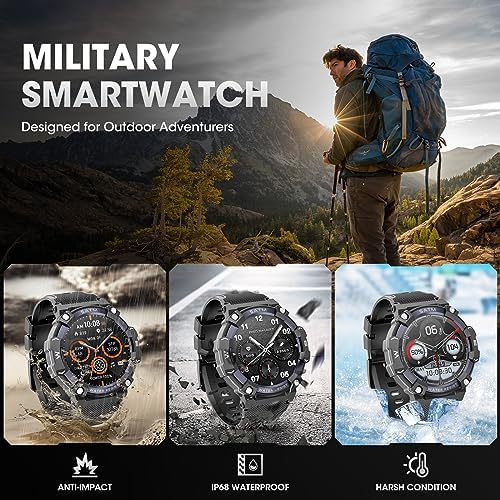 Military Smart Watch for Men with Bluetooth Call, IP68 Waterproof Fitness Tracker, Activity Tracker Watch with Heart Rate Sleep Monitor, Outdoor Sports Rugged Smartwatch for Android iPhone iOS
