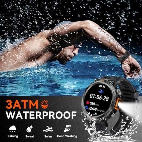 Be the first to review “Military Smart Watch for Men with LED Flashlight 1.45″ HD 3ATM Waterproof Outdoor Tactical Rugged Smartwatch Sports Fitness Tracker Watch with Heart Rate Sleep Monitor for iPhone Android Phone”