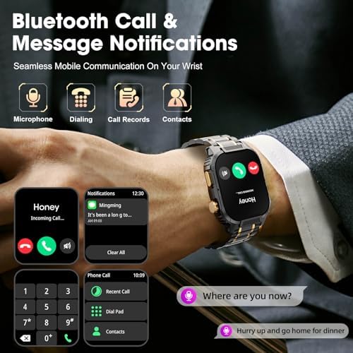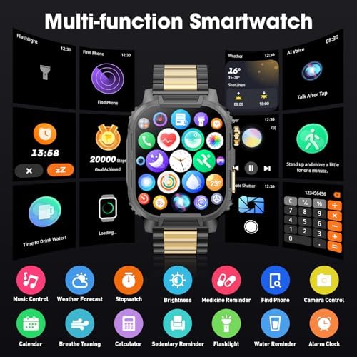 Be the first to review “Military Smart Watches for Men, 2.02″ Fitness Tracker with Bluetooth Call, Blood Oxygen, Heart Rate, Sleep Monitor, Sport Watch with 100+ Sports Modes, Smart Watch for Android iOS (Black Gold)”