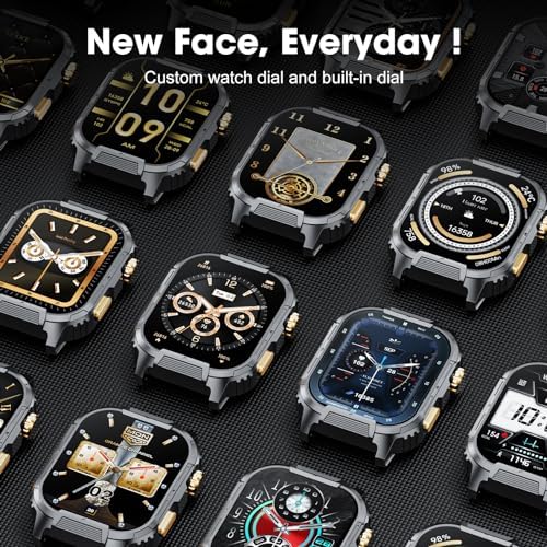 【Rugged Military Smart Watch】This military outdoor smartwatch for men is equipped with 2.02 inch HD large screen with resolution of 320*385, providing you with a comfortable viewing and touching experience. It has a rich built-in user interface. The “Da Fit” application has up to 300 watch faces for you to choose from. You can also upload your favorite photos. The diverse watch faces can better show your personalization and uniqueness.