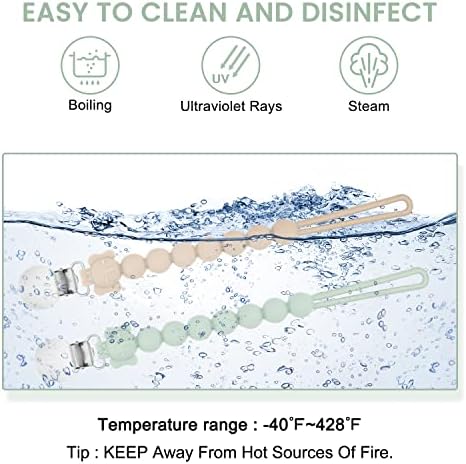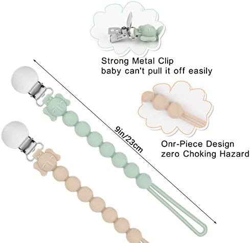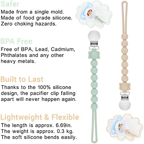 Ideal Length for Infants: Long enough to give infants the flexibility to move without pulling out their pacifier, but short enough that they can reach it if dropped, MISSLILI silicone pacifier holders are easy to attach and uniquely designed!