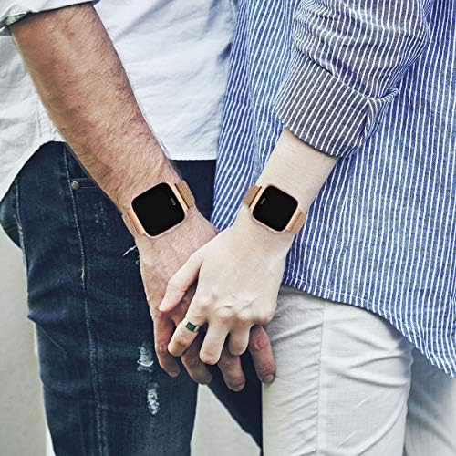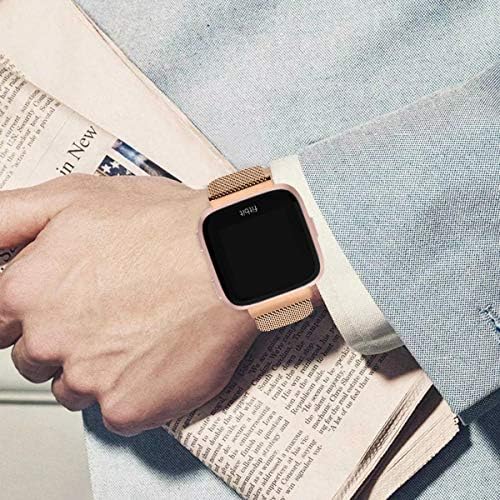 MNBVCXZ Metal Bands Compatible with Fitbit Versa / Fitbit Versa 2 / Fitbit Versa Lite Band, Adjustable Stainless Steel Mesh Wristbands Bracelet Straps for Fitbit Versa Fitness Smart Watch Women Men (RoseGold)