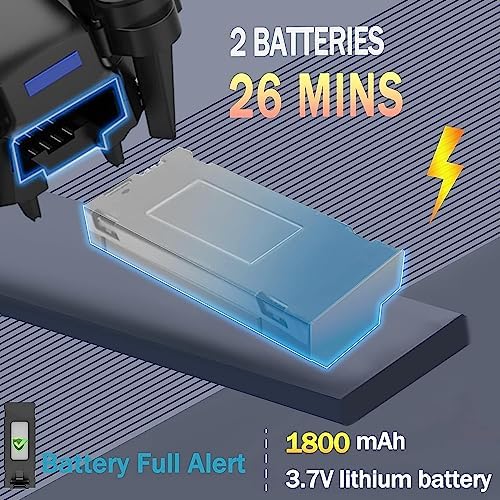 ✈【Two Baeetries for Long Time Fly】– You can enjoy up to 26 minutes of flight time in total with Two batteries (3.7V, 1800mAh). Upgraded charging cable uses imported chips for overvoltage protection to prevent accidents caused by incorrect charging. MOCVOO RC quadcopter also comes with four protective propeller guards, to avoid propeller damage during flight and extend the drone life. When in low battery, the lights of the drone continue to flash, you can operate it return to aviod loss.