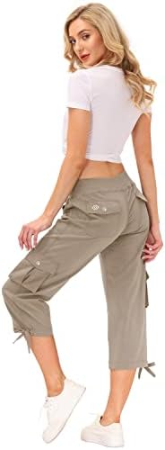 MoFiz Women’s Cargo Hiking Capri Pants Lightweight Quick Dry Running Athletic Casual Outdoor Button Pockets