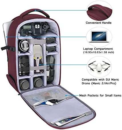 MOSISO Camera Backpack, DSLR/SLR/Mirrorless Photography Camera Bag 15-16 inch Waterproof Hardshell Case with Tripod Holder&Laptop Compartment Compatible with Canon/Nikon/Sony, Wine Red