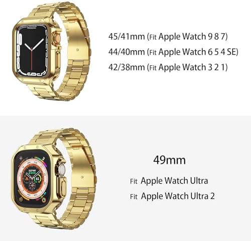 MRYUESG Compatible with Apple Watch Band and Case, Stainless Steel Metal Chain with TPU Cover, Smart-Watch Link Bracelet Strap, Wrist-Band for i-Watch Ultra Ultra2 Series 9 8 7 6 5 4 3 2 1 SE SE2