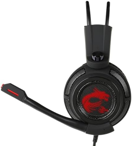 MSI DS502 Gaming Headset: 2 x Enhanced 40mm Drivers, Enhanced Virtual 7. 1 Surround Sound, Intelligent Vibration System, Cool LED Light, Light weight & Self-adjusting Headband Design