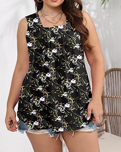 Naivikid Tank Tops for Women Pleated Flowy Summer Sleeveless Tops Casual Square Neck Shirts S-XXXL