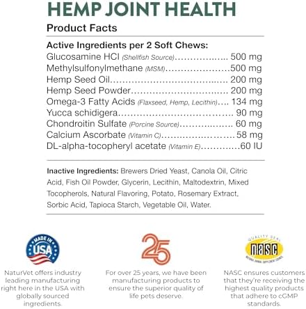 NaturVet Joint Health Hemp Soft Chews 60 Count (Jar) for Dogs