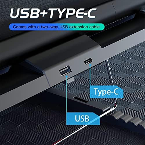 𝗨𝗡𝗜𝗤𝗨𝗘 𝗨𝗦𝗕 𝗣𝗢𝗥𝗧 𝗗𝗘𝗦𝗜𝗚𝗡 & 𝗦𝗧𝗢𝗥𝗔𝗚𝗘: These Laptop cooling pads with USB composite power interface, 1 USB port of the cooler is used to power the laptop, another USB port is used for other devices; the laptop cooler has a hidden storage design in the back for the USB cable.
