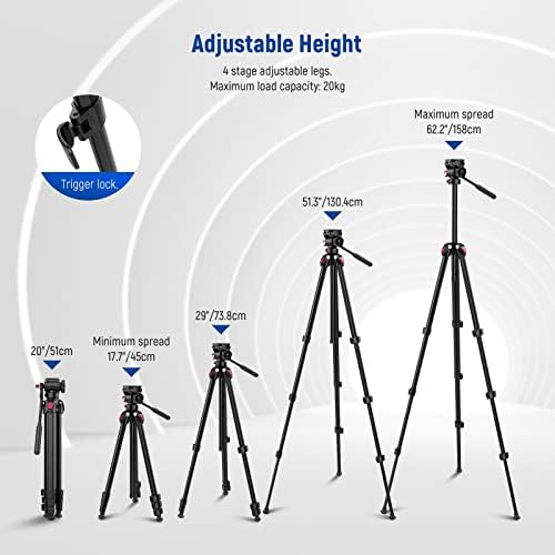 NEEWER 63″/160cm Travel Tripod, Portable Aluminum Video Tripod with Pan Tilt Fluid Head Compatible with Panasonic Sony Canon JVC Mini DV Camcorder, DSLR Camera, Max Load 17.6lb/8kg, TP22