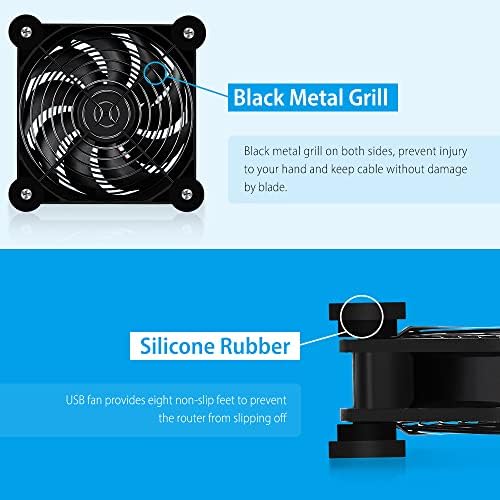 USB fan provides eight non-slip feet to prevent the router from slipping off.