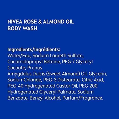 Cleanse, moisturize and indulge in a relaxing white rose petal scent with Nivea rose & almond oil body Wash care & roses body wash is what your daily routine needs. Let this indulging body wash with almond milk nourish your dry skin with a rich lather, while its rose scent Indulges your senses. This silky shower cream will leave your skin feeling soft and moisturized, even after towel drying. Product benefits: silky shower cream with moisturizing almond milk and the delicate scent of white rose petals leaves skin feeling soft and smooth moisturized skin feeling even after towel drying pH skin-balanced dermatologically tested 1 x 500ml bottle caution: keep out of reach from children. For external use only. Avoid contact with eyes.