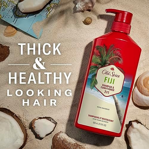 Your shower could use a little island breeze. Give this bottle of Old Spice Fiji 2in1 Shampoo and conditioner a squeeze. Your hair will feel as refreshed as the day You took it parasailing. The wind whipping through your hair, the sandy beaches shrinking below, your strong shadow putting fear in the heart of Triton himself. Now imagine how he will react when he notices how fresh your hair looks. And smells. That would be the ridiculously manly scent of fresh coconut and tropical wood. It comes to you inspired by Barbers and crafted for barbershop-quality results because you won’t find a barber up as high as you’re flying.