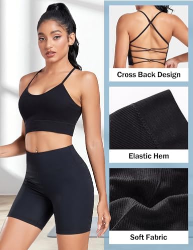 Oleda Cross Back Sports Bras for Women Padded Crisscross Strappy Bra Workout Yoga Gym Fitness Training Sexy Top Low Impact