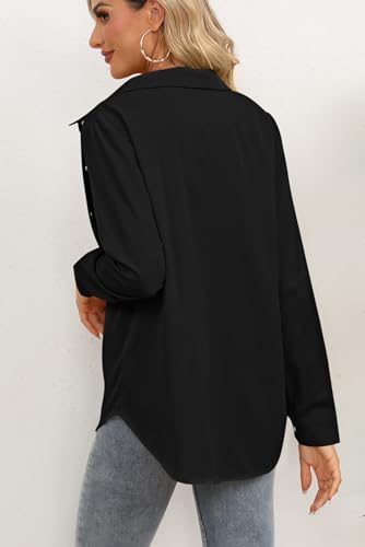 OMSJ Womens Button Down Shirts Long Sleeve Casual Work Blouses Dressy Plain Tops