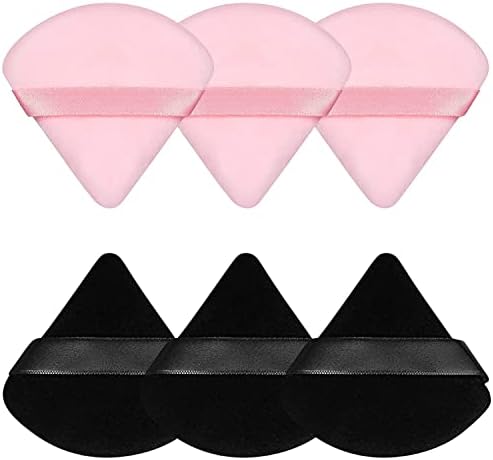 Ondaring 6Pcs Makeup Powder Puff Triangle Velvet Powder Puff with Ribbon Band for Contouring, Under Eyes, Corners, for Loose Powder Body Powder Makeup Tool