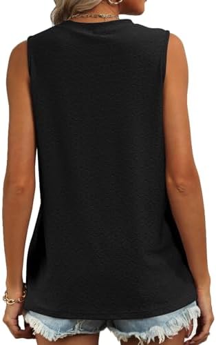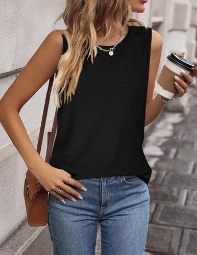 osazic Tank Tops for Women Eyelet Sleeveless Shirts High Crew Neck Loose Fit Summer Top 2024 S-XXL