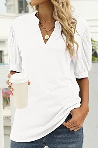 osazic Women Casual V-Neck T-Shirts Loose Puff Short-Sleeve Tops Tunic Blouse S-XXL