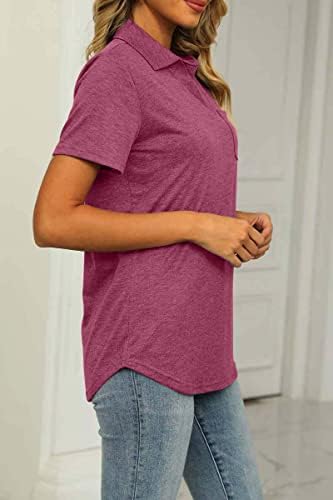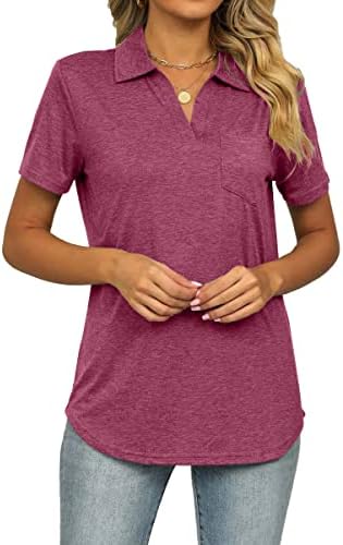 osazic Womens V Neck Polo Shirts Short Sleeve Collared Summer Tops Loose Casual Tunic Blouses with Pocket S-XXL
