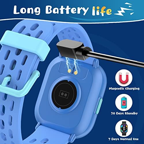 【Strong Battery life & IP68 Waterproof Smart Watch】Kids can charge the fitness watch very easy with the Magnetic charging cable. The fitness tracker takes only 2 hours to fully charge providing a 5-7 days battery life. this fitness watch can meet the waterproof requirements of your daily activities such as washing hands or working out in the rain with it. Whether it’s sweat or a small splash, just handle it with ease.Please remove the watch when bathing or swimming. Do not immerse the watch in water.