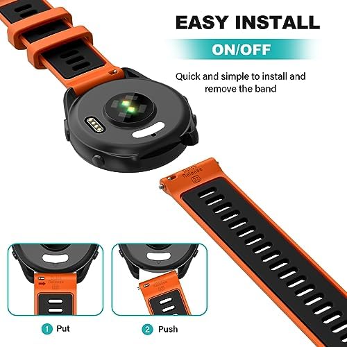 【Compatible Models】Compatible with Garmin Forerunner 265 Watch Band – 22mm Soft Silicone Replacement Wrist Strap for Garmin Forerunner 265, Forerunner 255, Vivoactive 4, Venu 2, Samsung Galaxy Watch 3 45mm. NOTE: The Smart Watch is NOT included.