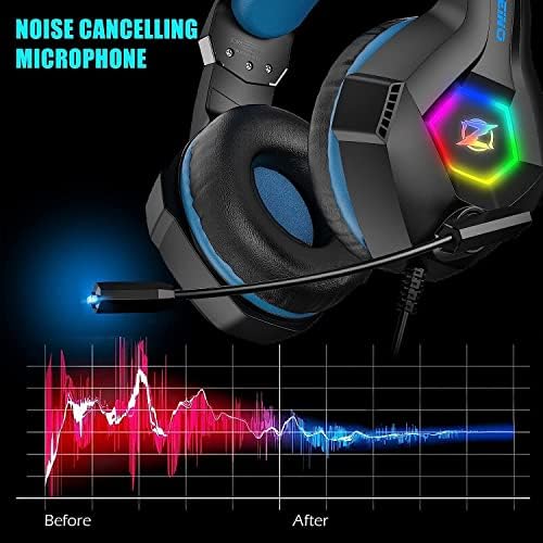 Ozeino Gaming Headset for PS5 PS4 Xbox One Switch PC, Over Ear Gaming Headphones with Noise Cancelling Microphone Volume Control RGB Light, Deep Bass Stereo Sound Headset for Laptop Mac Phone