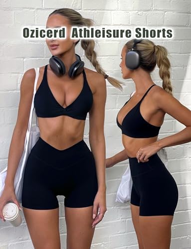 OZICERD High Waisted Gym Shorts for Women Scrunch Butt Workout Shorts Running Athletic Booty Shorts Black
