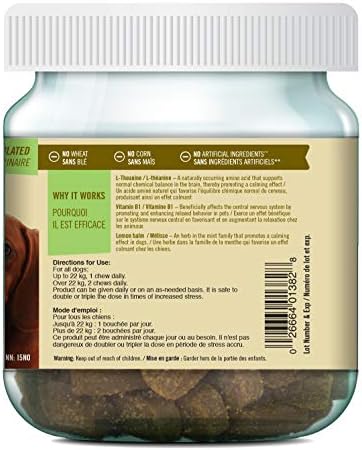 Supports calm behavior with a powerful blend of ingredients including l-tryptophan, l-theanine, lemon balm and thiamine (vitamin B1).