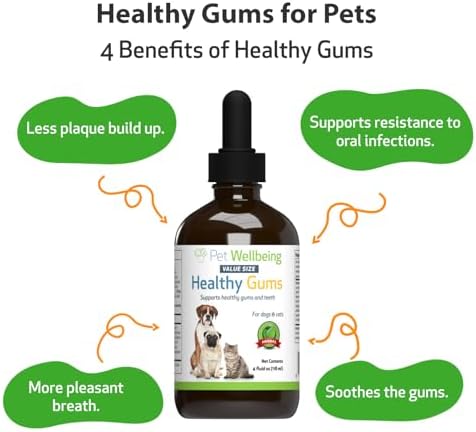 Pet Wellbeing Healthy Gums for Dogs & Cats – Vet-Formulated – Healthy Gums & Teeth, Gingivitis, Fresh Breath – Natural Herbal Topical 4 oz (118 ml)