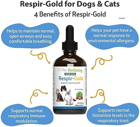 Pet Wellbeing Respir-Gold for Dogs & Cats – Vet-Formulated – Supports Easy Breathing, Normal Airways, Respiratory Health – Natural Herbal Supplement 4 oz (118 ml)