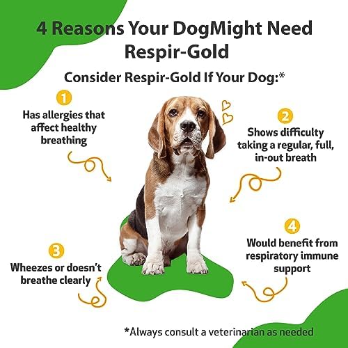 ✅ BREATHING EASE. The herbs in Respir-Gold provide gentle support to help your dog maintain normal, open airways and easy, comfortable breathing.