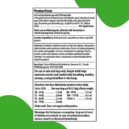 Pet Wellbeing Respir-Gold for Dogs – Vet-Formulated – Supports Easy Breathing, Normal Airways, Respiratory Health – Natural Herbal Supplement 2 oz (59 ml)
