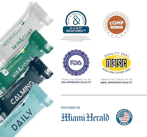 📜𝗠𝗮𝗻𝘂𝗳𝗮𝗰𝘁𝘂𝗿𝗲𝗱 𝗶𝗻 𝗮𝗻 𝗙𝗗𝗔 & 𝗡𝗔𝗦𝗖 𝗔𝗽𝗽𝗿𝗼𝘃𝗲𝗱 𝗙𝗮𝗰𝗶𝗹𝗶𝘁𝘆: Our skin and coat supplement for dogs are produced in facilities approved by the FDA & NASC, ensuring the highest quality standards. Containing absolutely No Soy, No Dairy, No Synthetic, and Non-GMO ingredients, providing peace of mind regarding safety and purity.