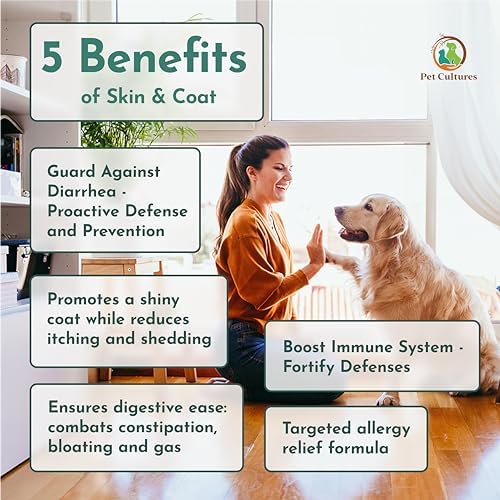 PetCultures Skin and Coat Supplement for Dogs – Salmon Oil for Dogs with Omega 3, 6 Including Prebiotics, Probiotics & Postbiotics for Maximum Absorption, Shedding & Itch Relief | 30 Powder Packs