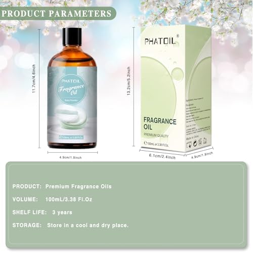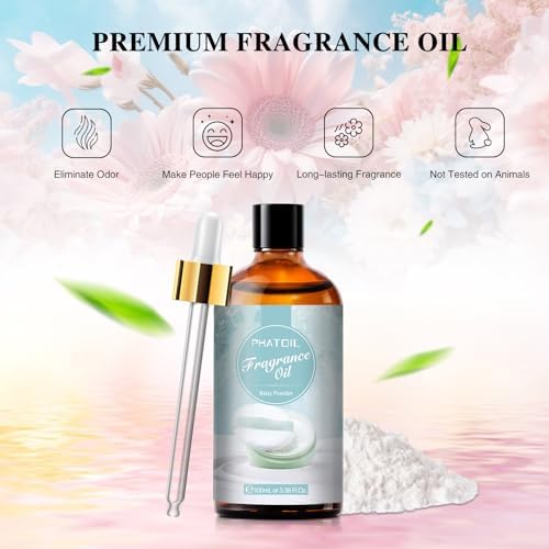 PHATOIL Baby Powder Fragrance Oils, 3.38FL.OZ Large Volume Baby Powder Oil, Perfect for Aromatherapy Diffuser, Great for DIY Candle and Scented Products Making, Gift for Friends with Glass Dropper
