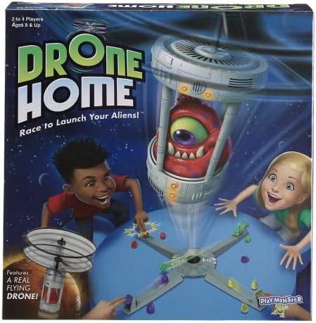 Race to launch your aliens! Race to launch your aliens down the ramps and land inside the drone! Watch out—there’s a delay once you make it in, so others can knock you out! If you stay in and your alien escapes when the drone lifts off, you’re one step closer to winning! Get rid of all your aliens first to win! It’s fast-paced fun for the whole family, and it’s the first game to include a real, flying drone! Requires batteries, not included. Patent pending.