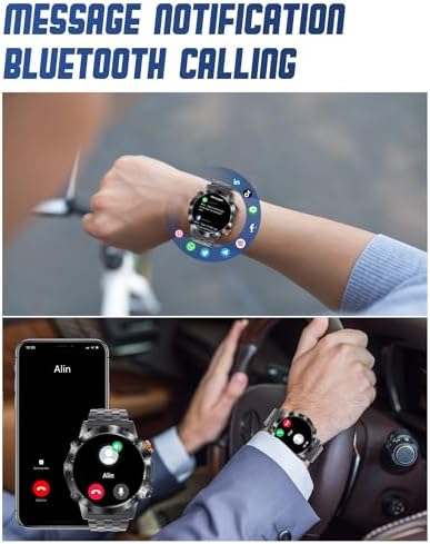 ⌚【BLUETOOTH CALLS & MESSAGES NOTIFICATIONS】Connect via the app for Bluetooth calls and music playback on this smartwatch. Answer calls, receive message alerts, and stay updated from your wrist. Stay focused while driving, exercising, or in situations where holding a phone is inconvenient. This tactical smartwatch centralizes calls and notifications, reducing distractions and keeping you informed.