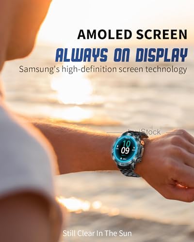 ⌚【HIGHEST TECHNOLOGY AMOLED SCREEN & CUSTOMIZE YOUR STYLE】Our advanced smartwatch with a high-tech AMOLED screen for vibrant colors and stunning visuals. With a resolution of 466*466, enjoy clear visibility even in sunlight, free from reflections. Choose between stainless steel and silicone watchbands to match your style. Access the app for 200+ customizable watch faces and create unique designs using personal photos to express your individuality.