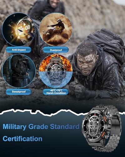 ⌚【MILITARY-GRADE CERTIFIED & ALL-METAL FRAME】The military smartwatch has undergone 15 of the most rigorous durability tests – simulating deserts, rainforests, and Arctic conditions, proving that only a timepiece engineered tough enough for any environment can be smart enough for accessibility. With IP67 water resistance, the watch can handle splashes, sweat, and more, allowing you to wear it while washing your hands or in light rain (not suitable for swimming or prolonged submersion).