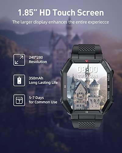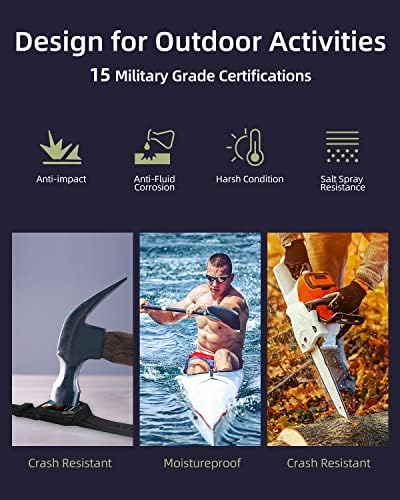 ⌚【MILITARY-GRADE SMARTWATCH】The smartwatch has undergone 15 military-grade tests, making it tough enough to endure extreme conditions such as hot deserts, humid rainforests, and polar glaciers. With its IP67 waterproof design, you can even wear it while washing your hands (but not while swimming or soaking in water). Additionally, it features useful functions including weather forecast, clock alarm, remote camera, sedentary reminder, and more.