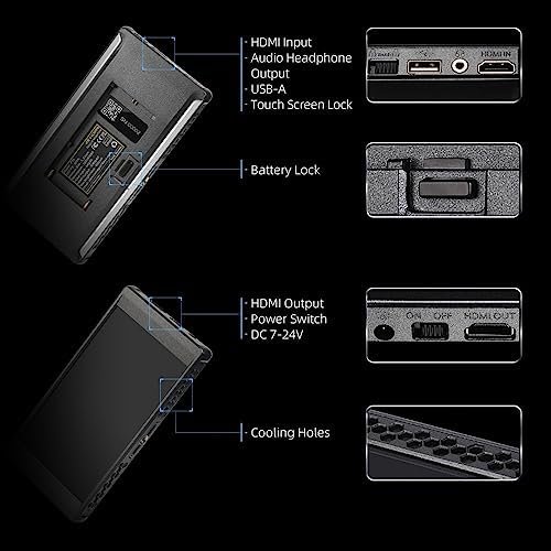 Portkeys PT6 5.2 inch DSLR Camera Monitor, 3D LUT 4K HDMI Touch Screen 1920 * 1080 Live Streaming Monitor with Peaking Frame, Wireframe Protection, Image Crop Function for Live Stream, etc