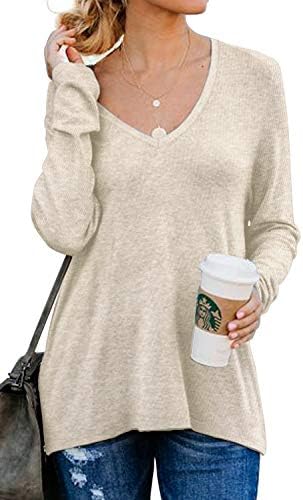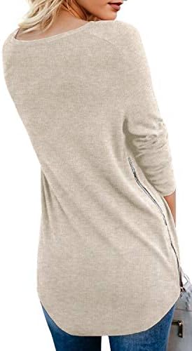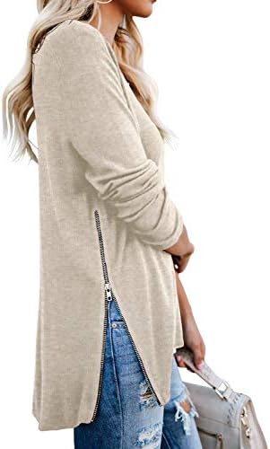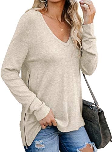 PrinStory Fall Womens Tops Casual V Neck Long Sleeves Tunic Shirt Split Top with Side Zipper