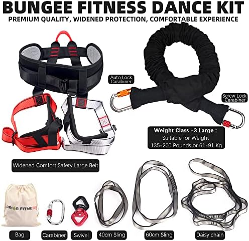 What You Get: Each bungee workout equipment set comes with everything you need to get started with your bungee fitness routine, including 1*Swivel, 1*Carabiner, 1*Harness, 2*sling(40cm & 60cm), 1*1.1m Daisy Chain