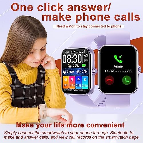 PTHTECHUS Smart Fitness Tracker Watch for Girls Boys, 1.83″ HD Kids Cute Smartwatch with 37 Sports Modes Pedometer Activity Phone Calls Siri App Notifications Music Sleep Alarm Clock Gift for teenager