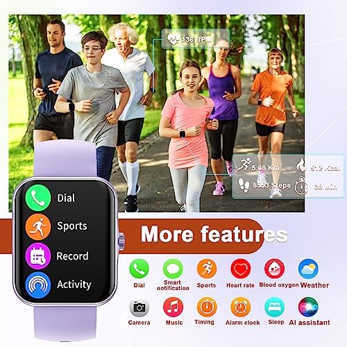 ✅ 【More Practical Functions】The watch has many practical functions, such as customized dial, voice assistant, call, women’s period, alarm clock, distance tracking, 37 sport modes, smart notification, weather, camera control, music controller, pedometer, sedentary reminder, find phone, APP management and so on. You can adjust the screen brightness and watch language directly on the watch, the smartwatch can bring you more intelligent experience, which is the best choice for your family gift!