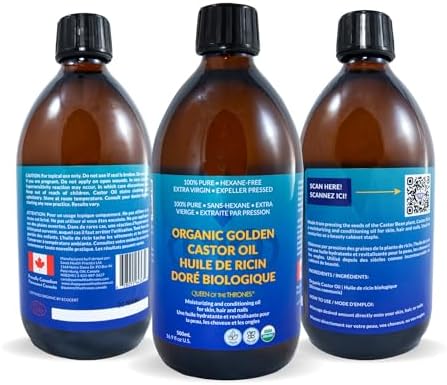 Queen of the Thrones® Organic Golden Castor Oil | 100% Pure, Certified Organic, Hexane-Free, Extra Virgin | Moisturizing & Conditioning Oil for Skin, Hair & Nails (500. ml)